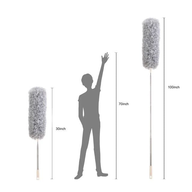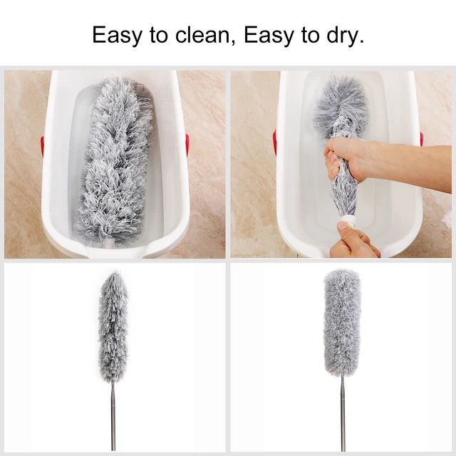 زعافة تنظيف قابلة للطي والتمديد مصممة للوصول إلى أصعب وأبعد الأماكن داخل المنزل أو السيارة. تأتي بيد استانلس متينة وتتميز بكثافة عالية لضمان تنظيف فعّال ودقيق. يمكن تمديدها حتى 3 أمتار تقريبًا، مما يجعلها مناسبة لتنظيف أعلى التكييفات، أعلى الدواليب، الزوايا المرتفعة، الجبس بورد، وغيرها من الأماكن التي يصعب الوصول إليها.