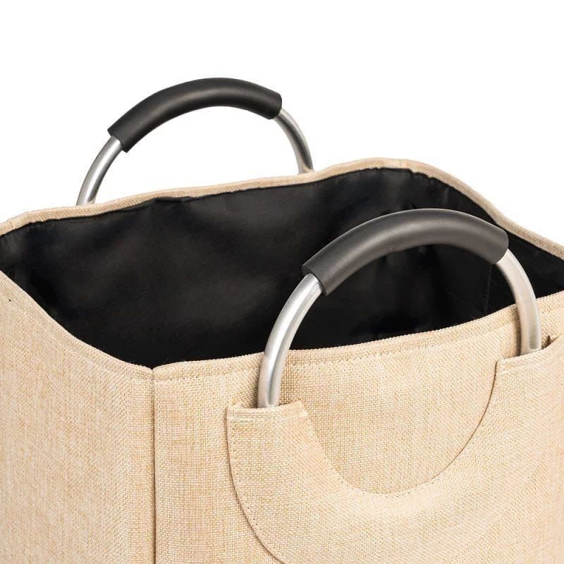 باسكت غسيل كتان مبطن جامبو بيدين معدن – قابل للطي وسهل الحمل
