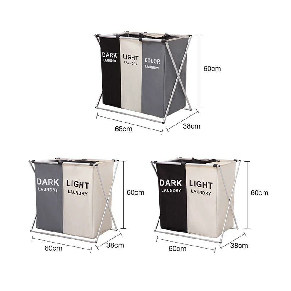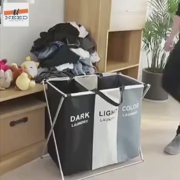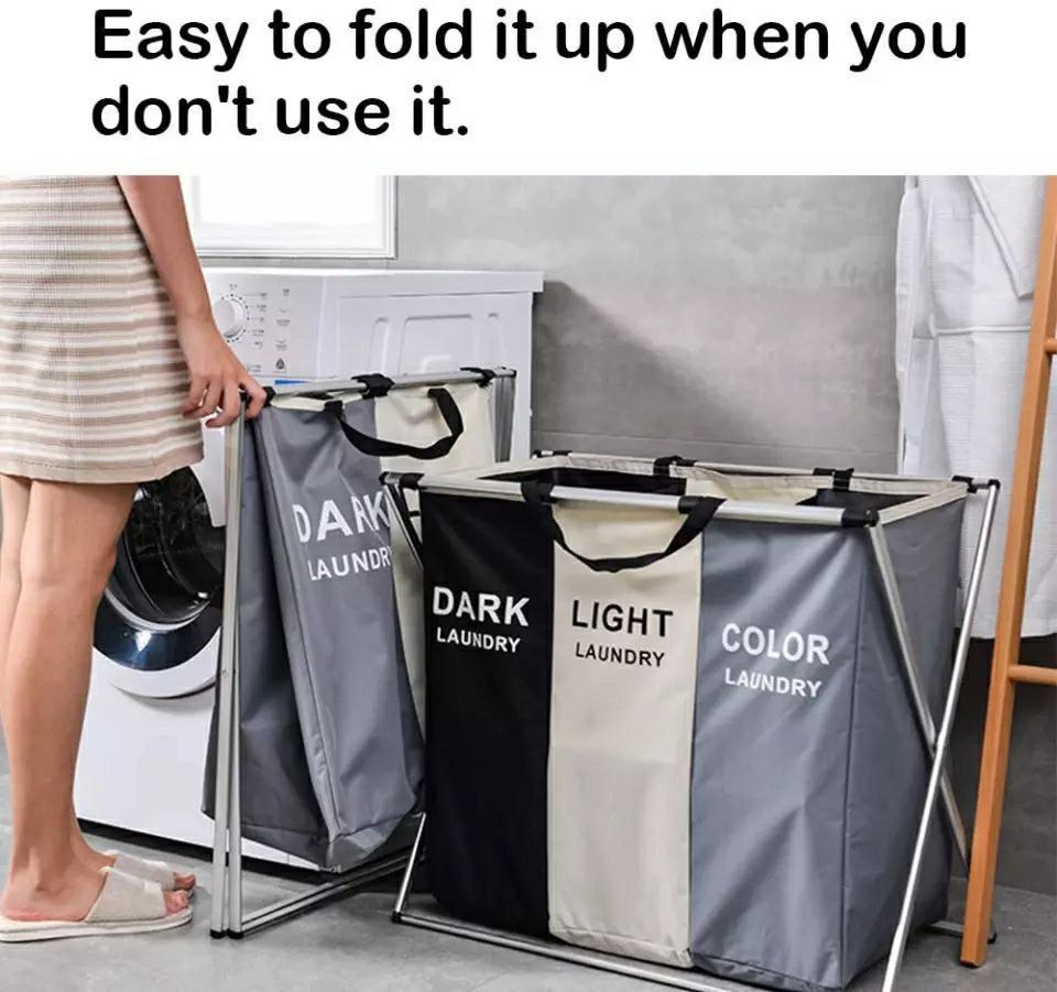 باسكت غسيل مقسم 3 خانات بخامة قوية وقوائم معدن – المقاس الكبير
