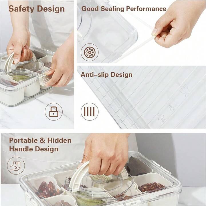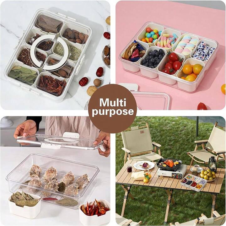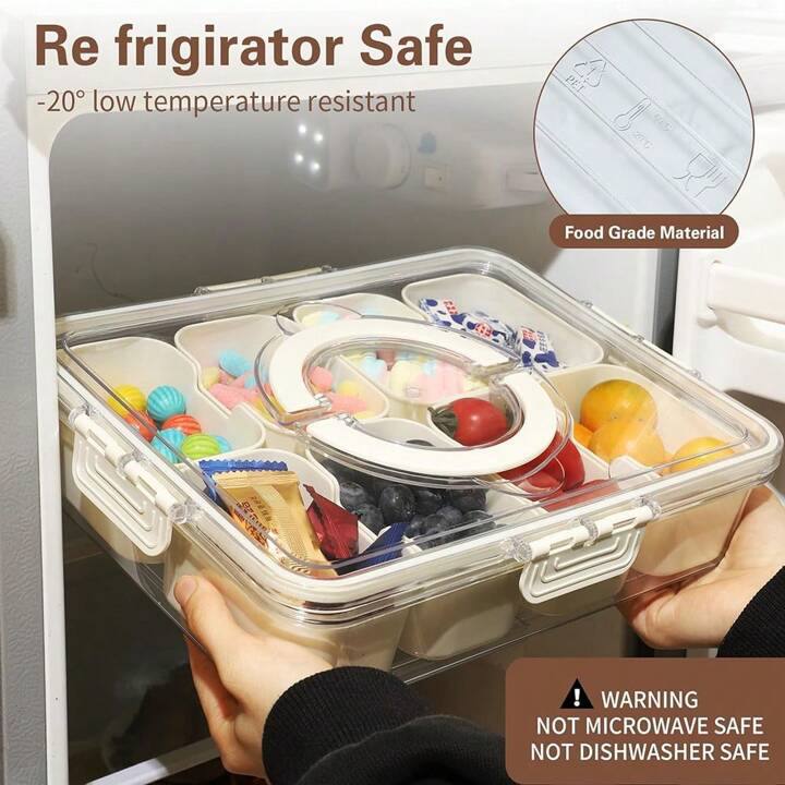 يتميز بخانات متحركة يمكن فصلها أو تفريغها حسب الحاجة، مع غطاء محكم للحفاظ على المحتويات طازجة ومنظمة.