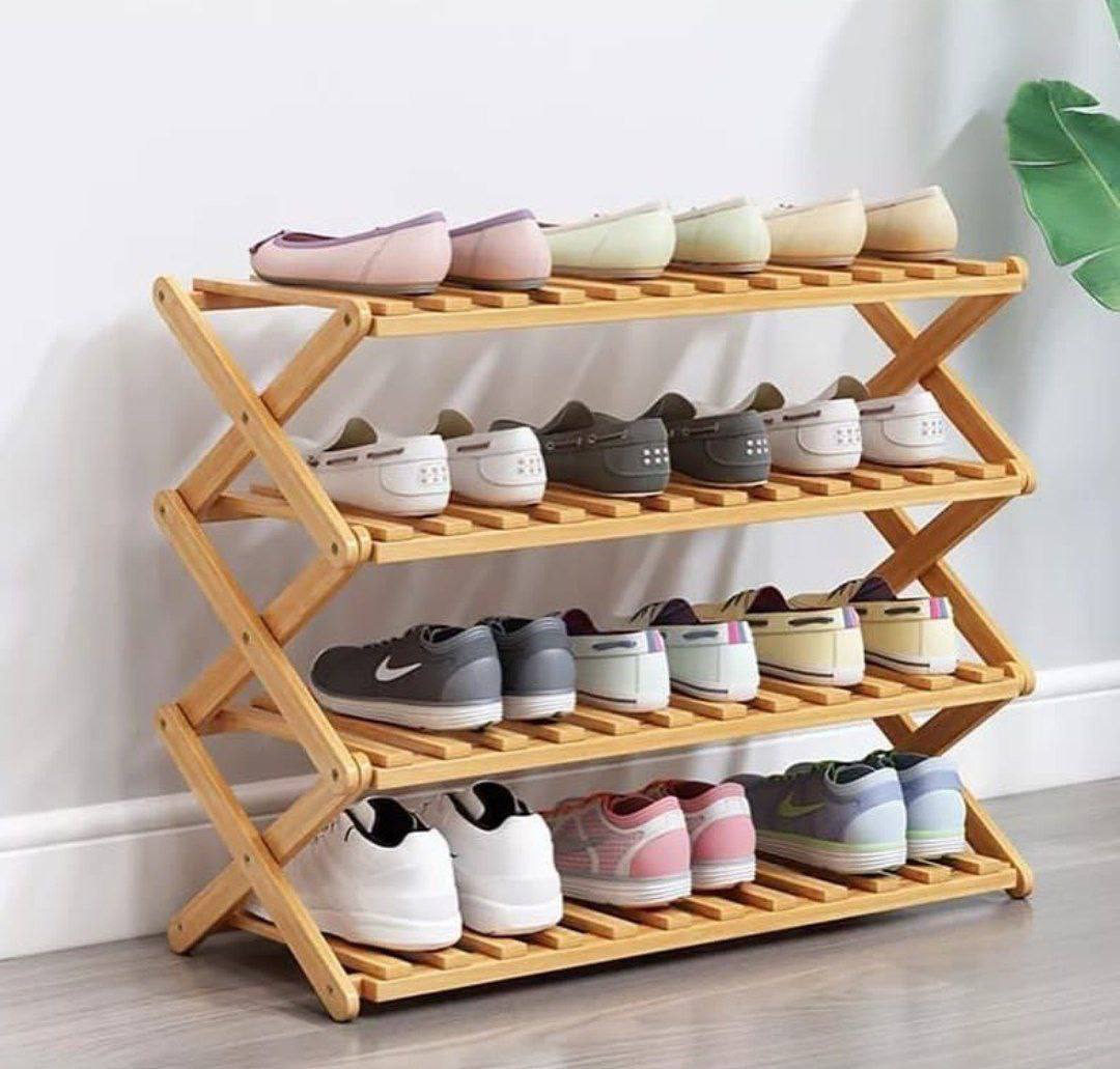 رتّبي مساحتك بلمسة ديكور عملية مع جزامة خشب قابلة للطي – 4 أدوار بتصميم مستورد وشكل شيك يليق بأي مكان 💎🪵