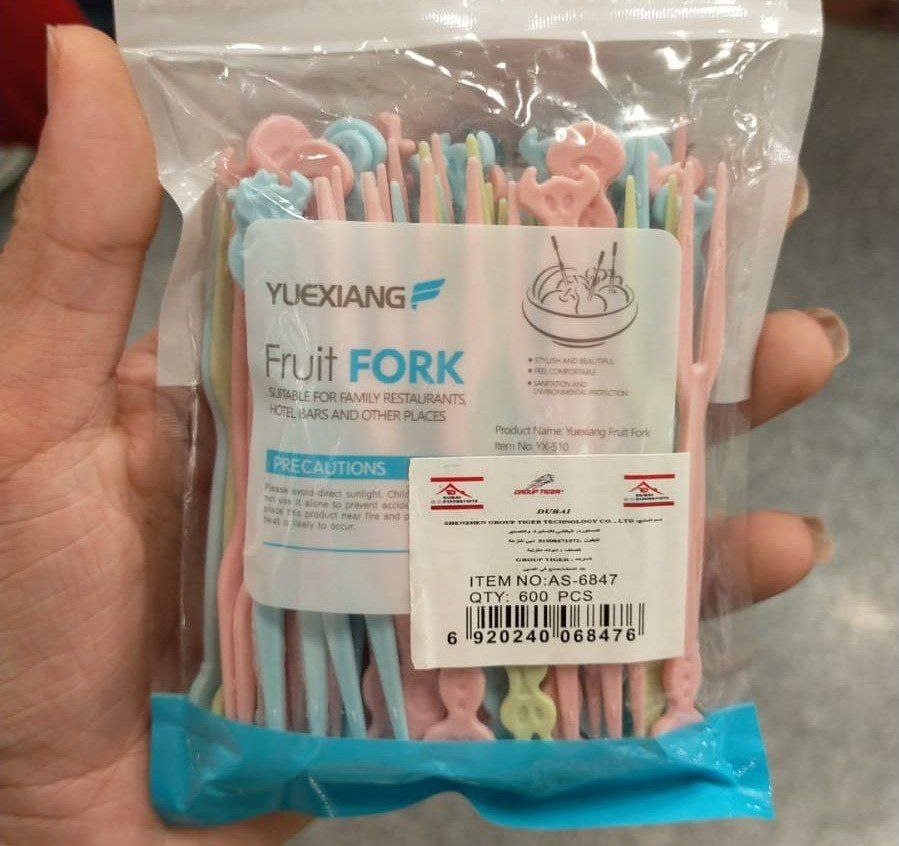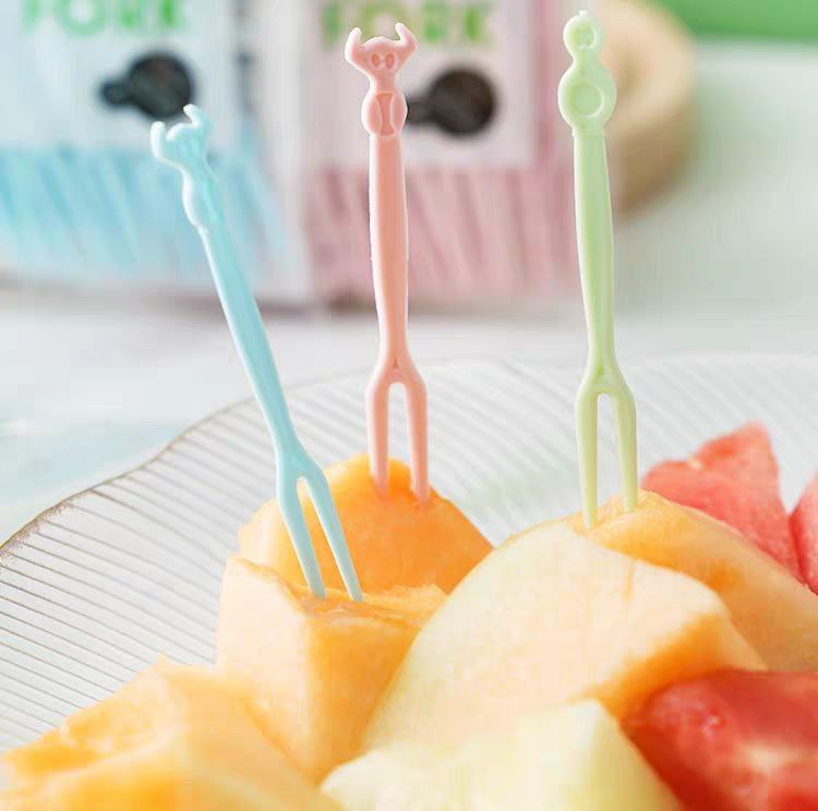 شوك فاكهة عملية مصنوعة من بلاستيك بيور آمن ومتين، تأتي بتصميم شوكتين لتسهيل تناول الفاكهة والمقبلات.
