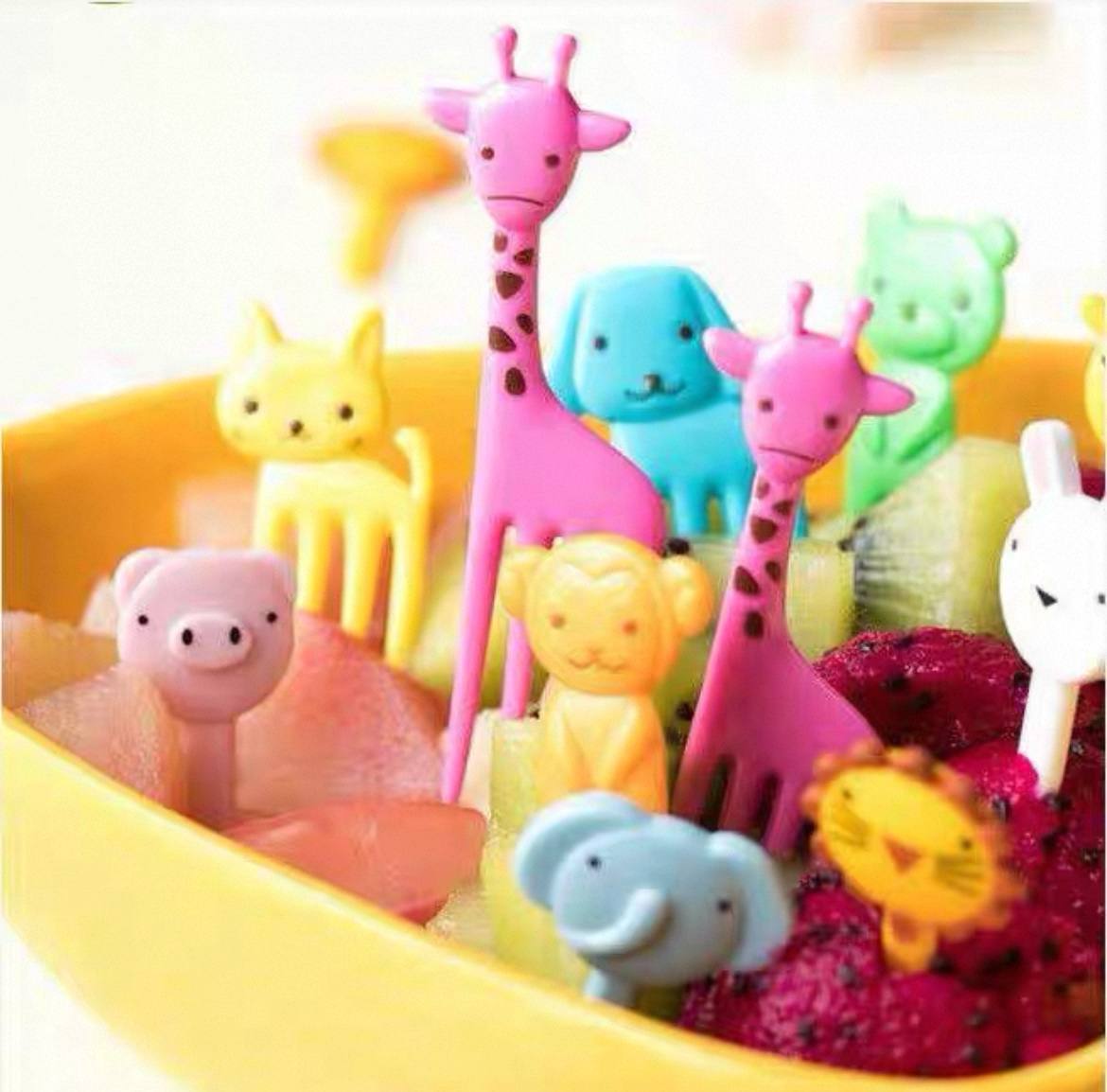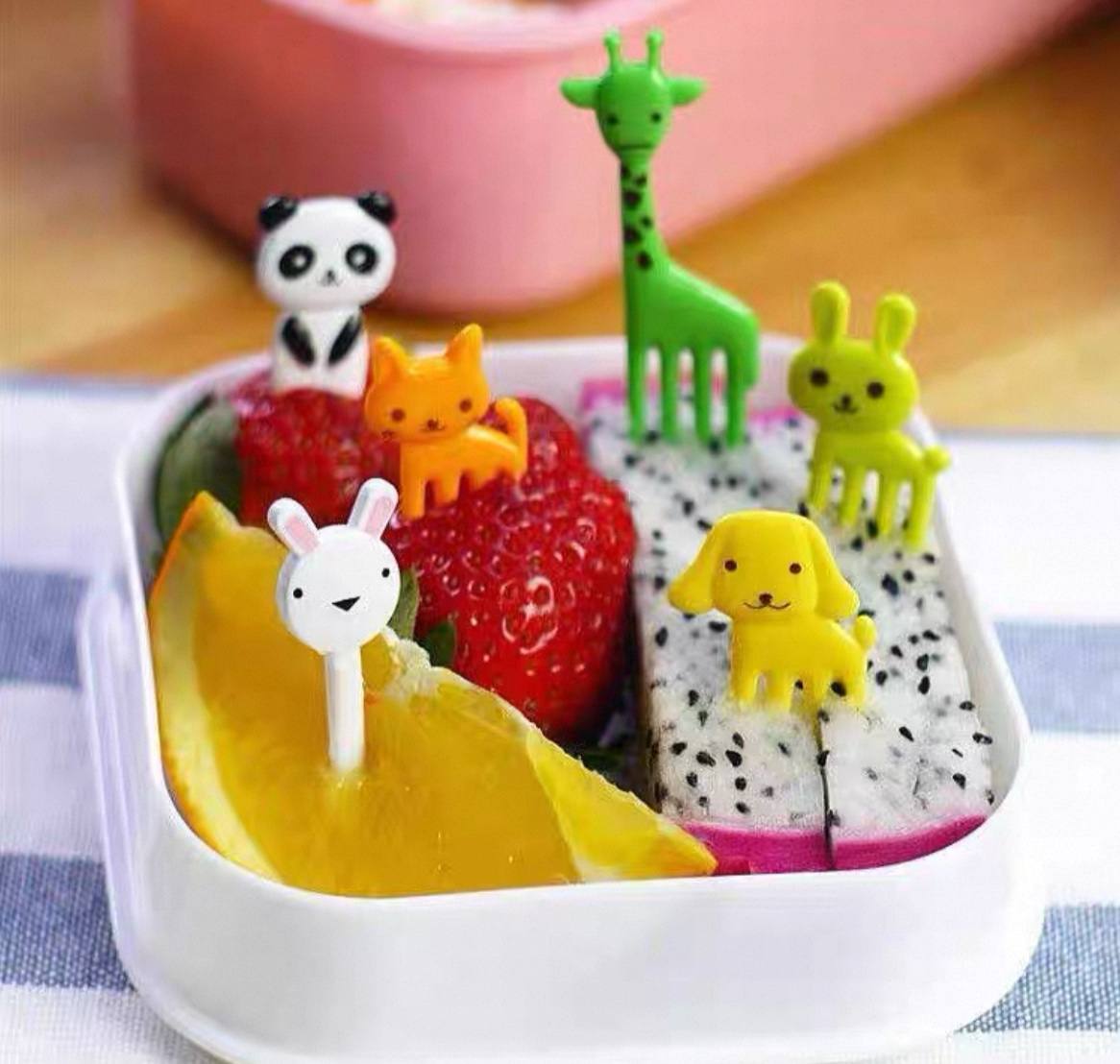شوك لانش بوكس صغيرة للأطفال بتصميم حيوانات ملونة – عملية ومناسبة للفواكه والسناكس