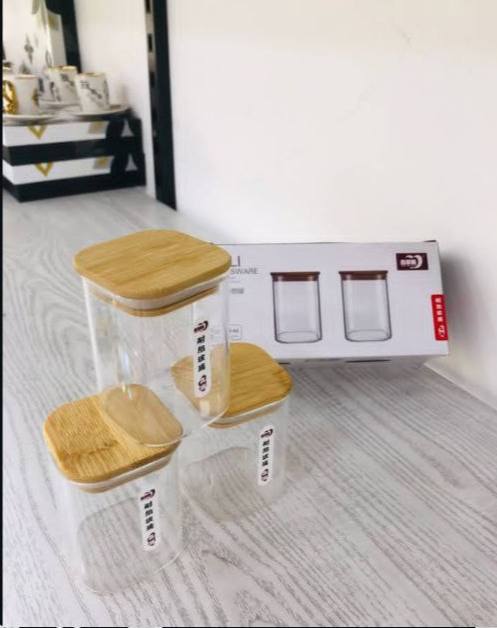 طقم برطمانات توابل ايكيا طقم برطمانات 3 قطع 220 ml برطمانات زجاج شفاف مزوده بغطاء خشب محكم الغلق
