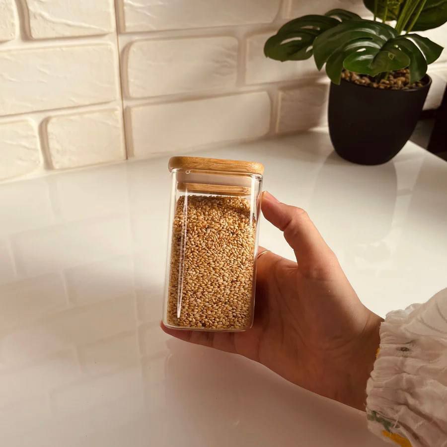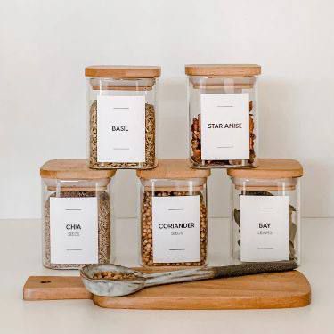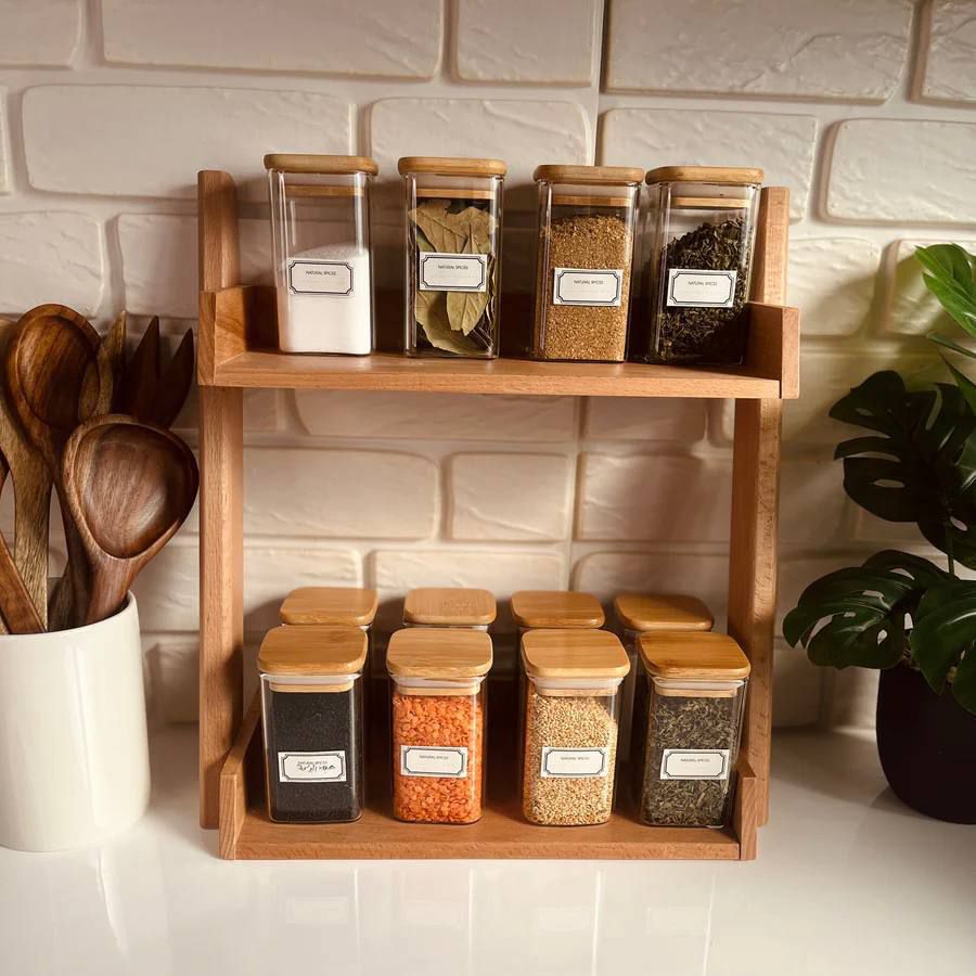 طقم أنيق مكون من 12 برطمان توابل زجاج مستورد بتصميم مربع مميز. مزود بغطاء خشبي محكم الغلق يحافظ على النكهة والطزاجة لأطول فترة. يأتي في علبة شيك، مناسب لتخزين التوابل والبهارات وإضافة لمسة جمالية عملية لمطبخك.