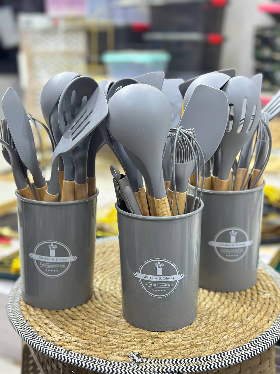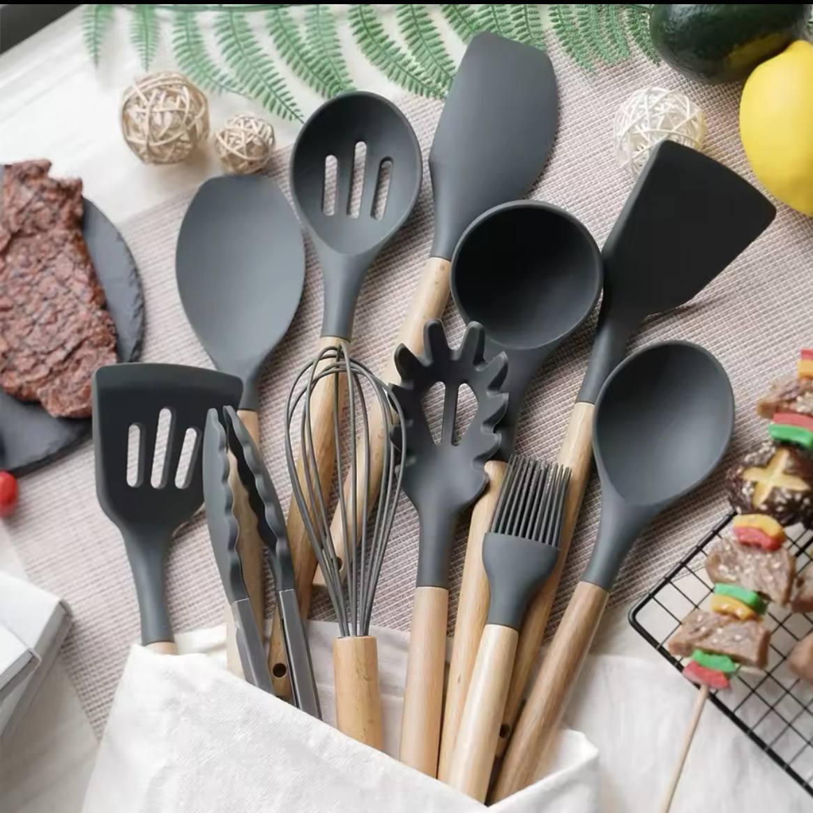طقم توزيع الشيف بوراك الأصلي سيليكون حراري بيد خشب – 12 قطعة فاخرة بالحامل