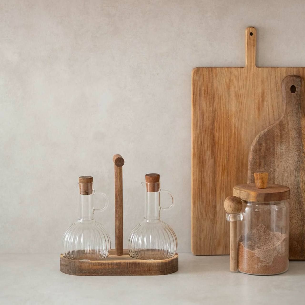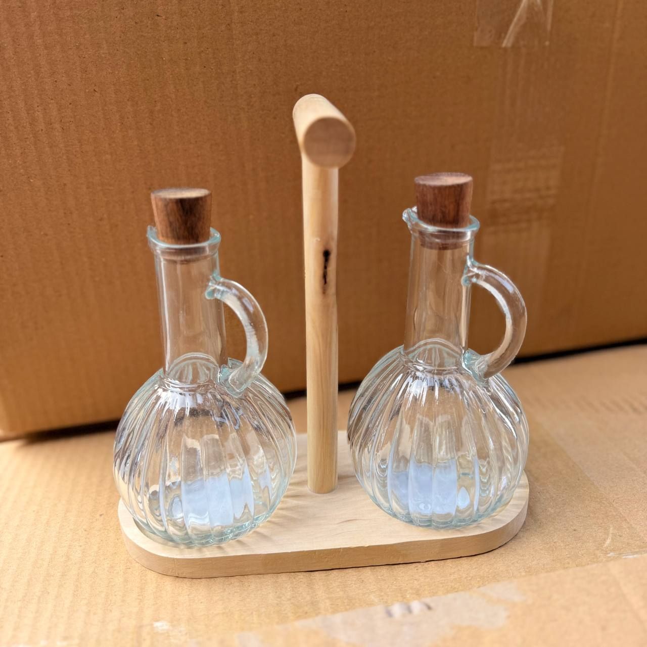 طقم زجاجات زيوت بيركس 2 قطعة مع حامل خشب بامبو أنيق