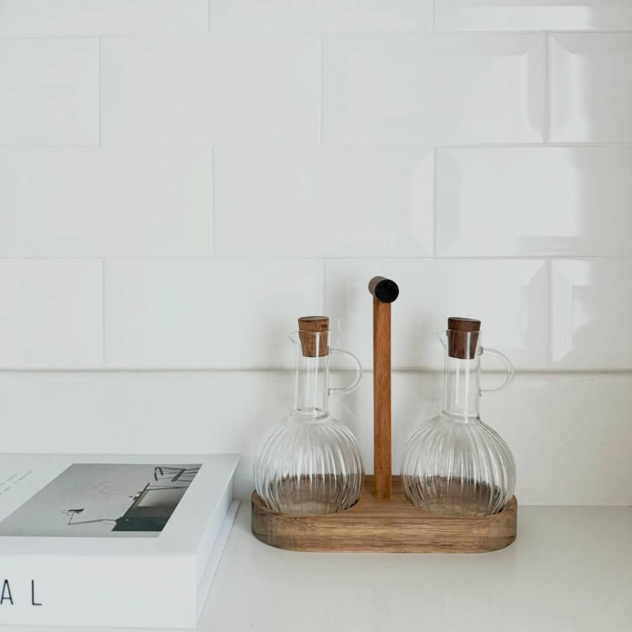 طقم زياتة بيركس أنيق وعصري مكوّن من 2 زجاجة سعة 220 مل، مثالي لتقديم الزيت والخل بطريقة راقية على سفرتك.