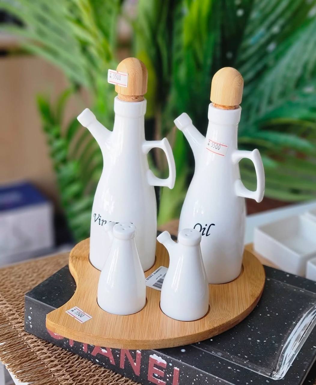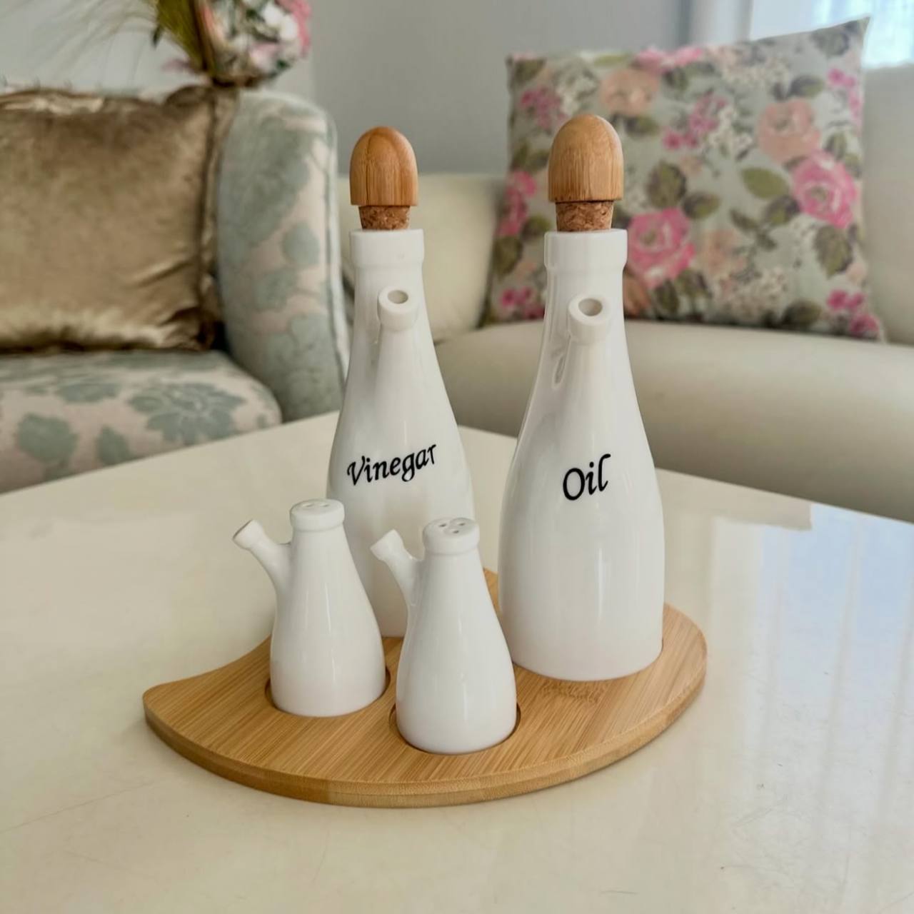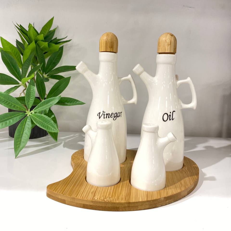 طقم زجاجة زيت بورسلين بالملاحة – 5 قطع راقية لحاجات مطبخك