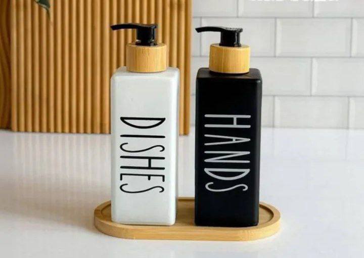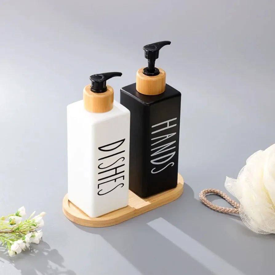 ✨ مزود بحامل خشب بامبو يدي شكل فخم للحمّام