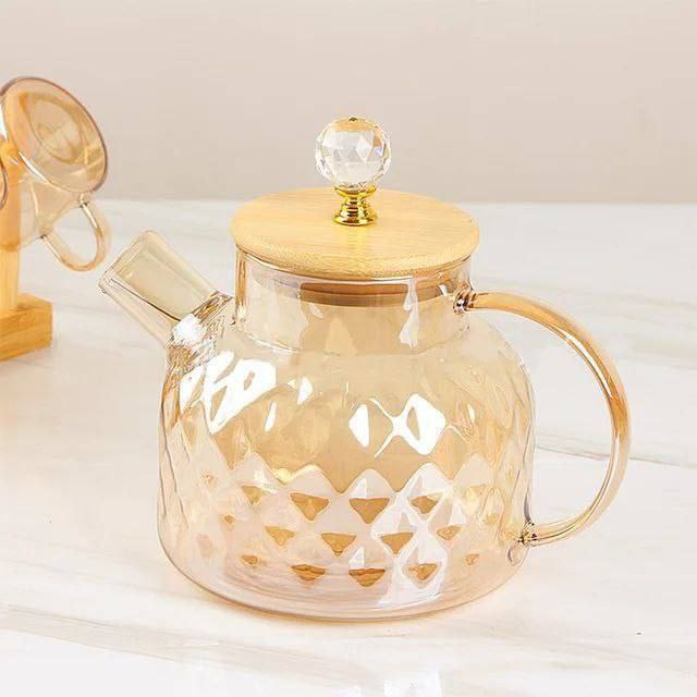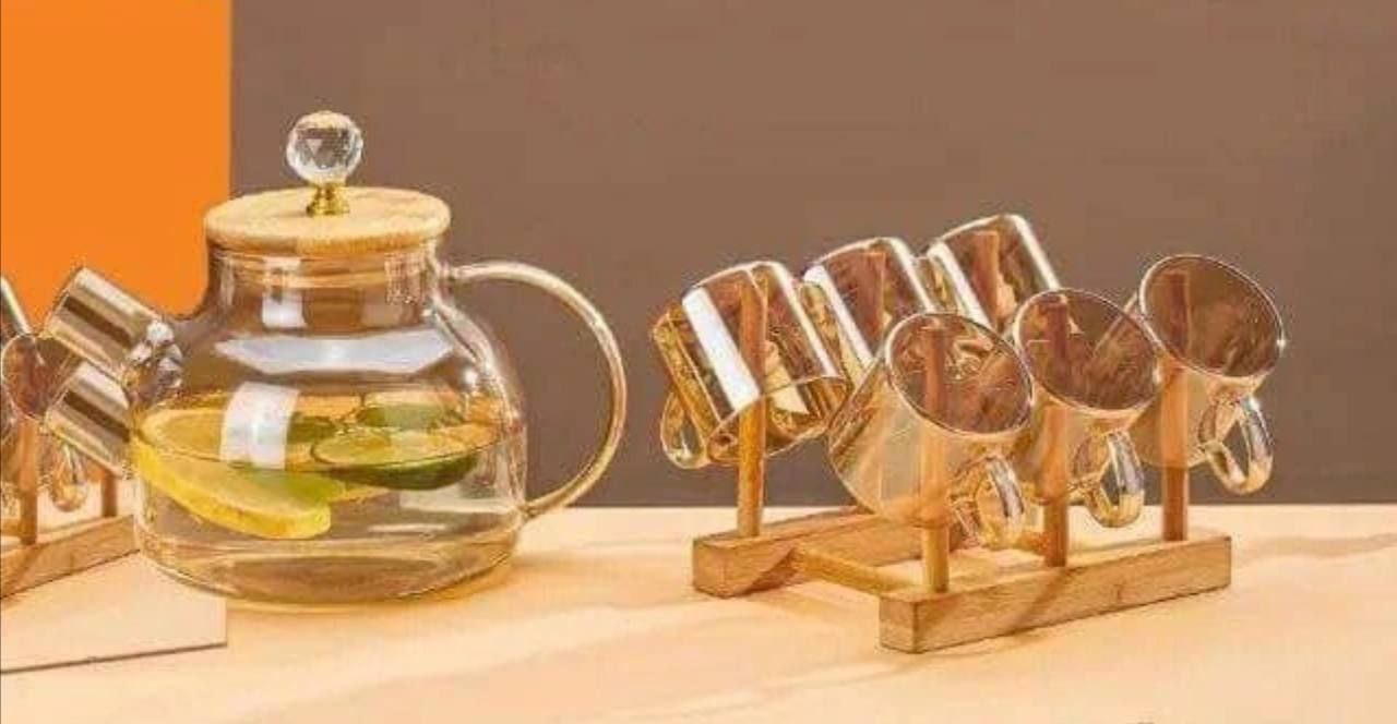 استمتعي بأوقات الشاي مع طقم المزاج الرايق الجولد المصنوع من زجاج البيركس الحراري عالي الجودة.