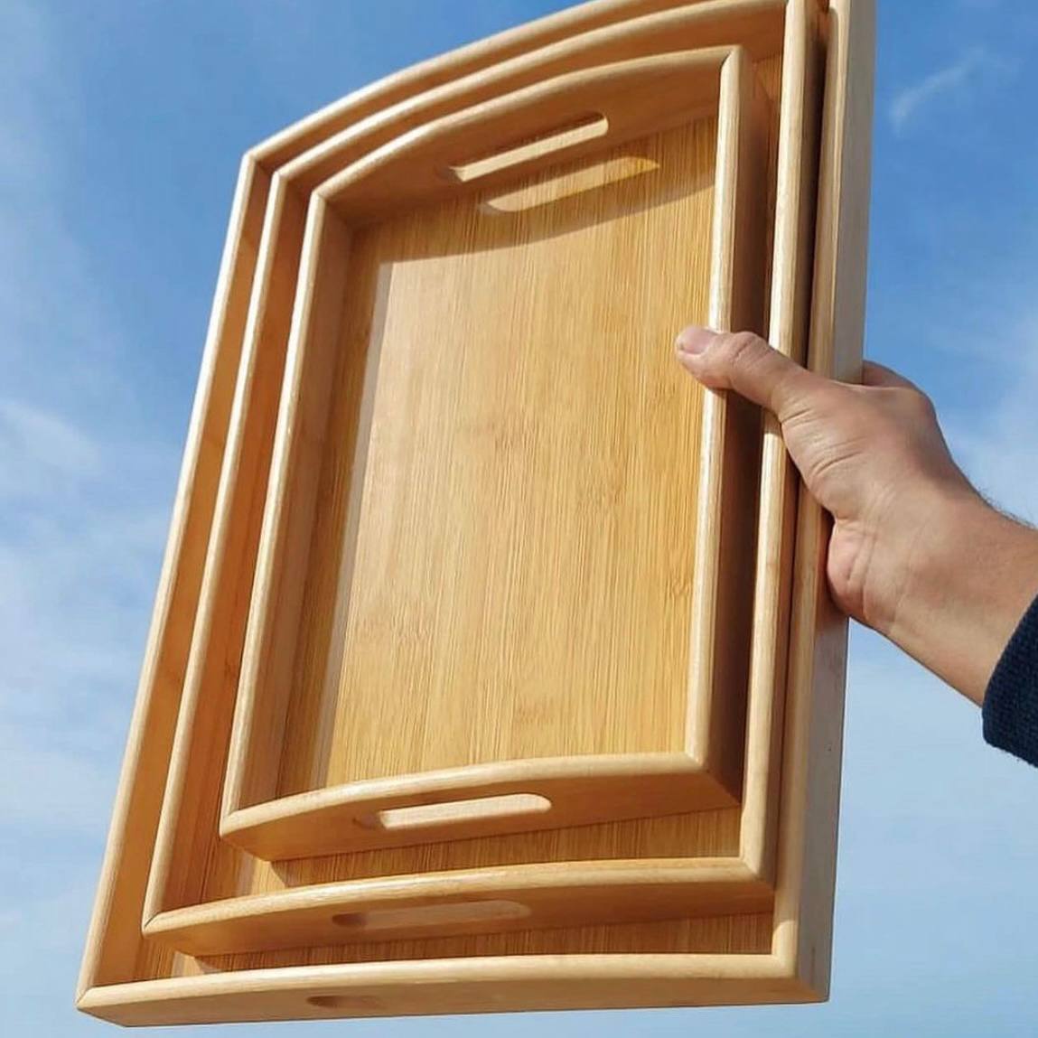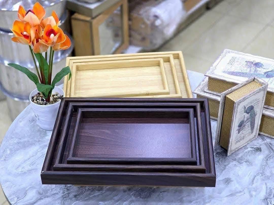 طقم صواني خشب بامبو 3 قطع – تصميم مستورد عالي الجودة