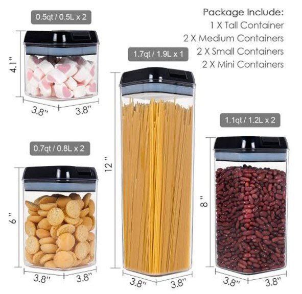 طقم علب تخزين أكريليك جامبو مكون من 7 قطع مثالي لتنظيم المطبخ وتخزين البقوليات، التوابل، والسناكس.