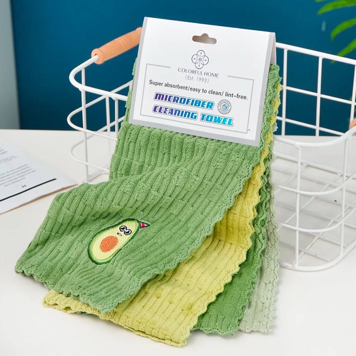 طقم فوط تنشيف أفوكادو عملي وأنيق، يحتوي على 4 فوط بألوان مستوحاة من الأفوكادو.