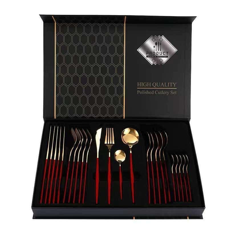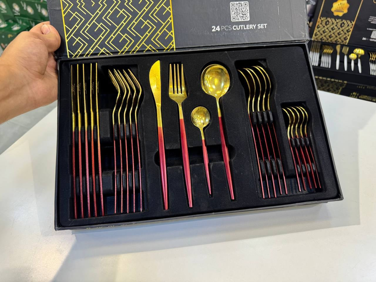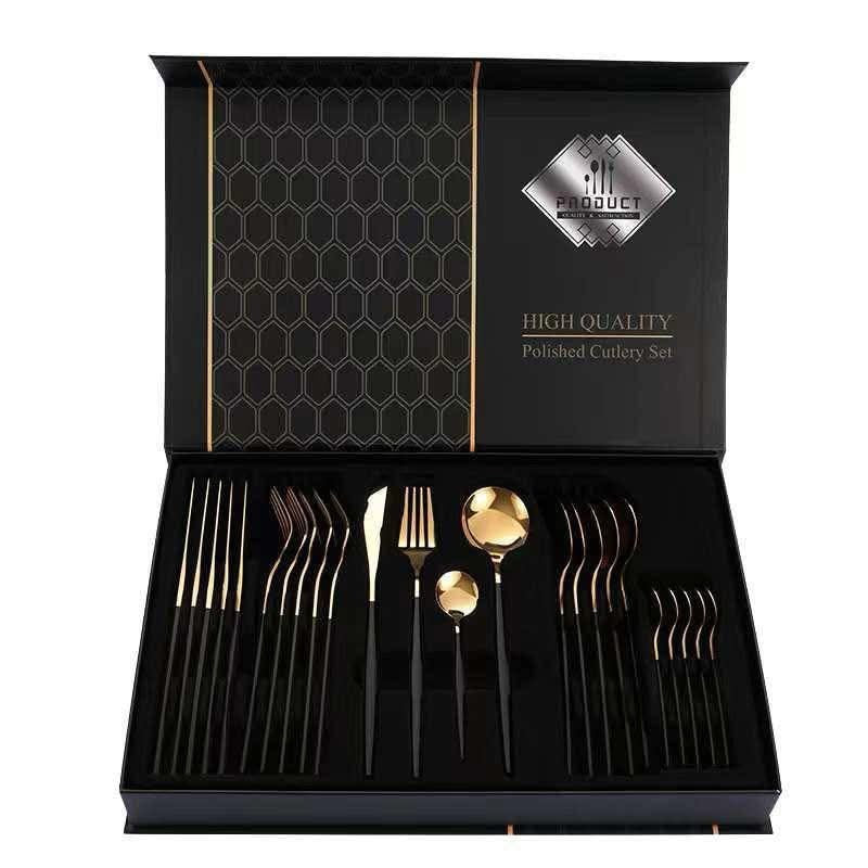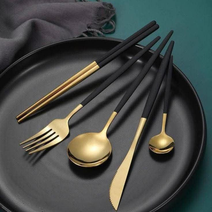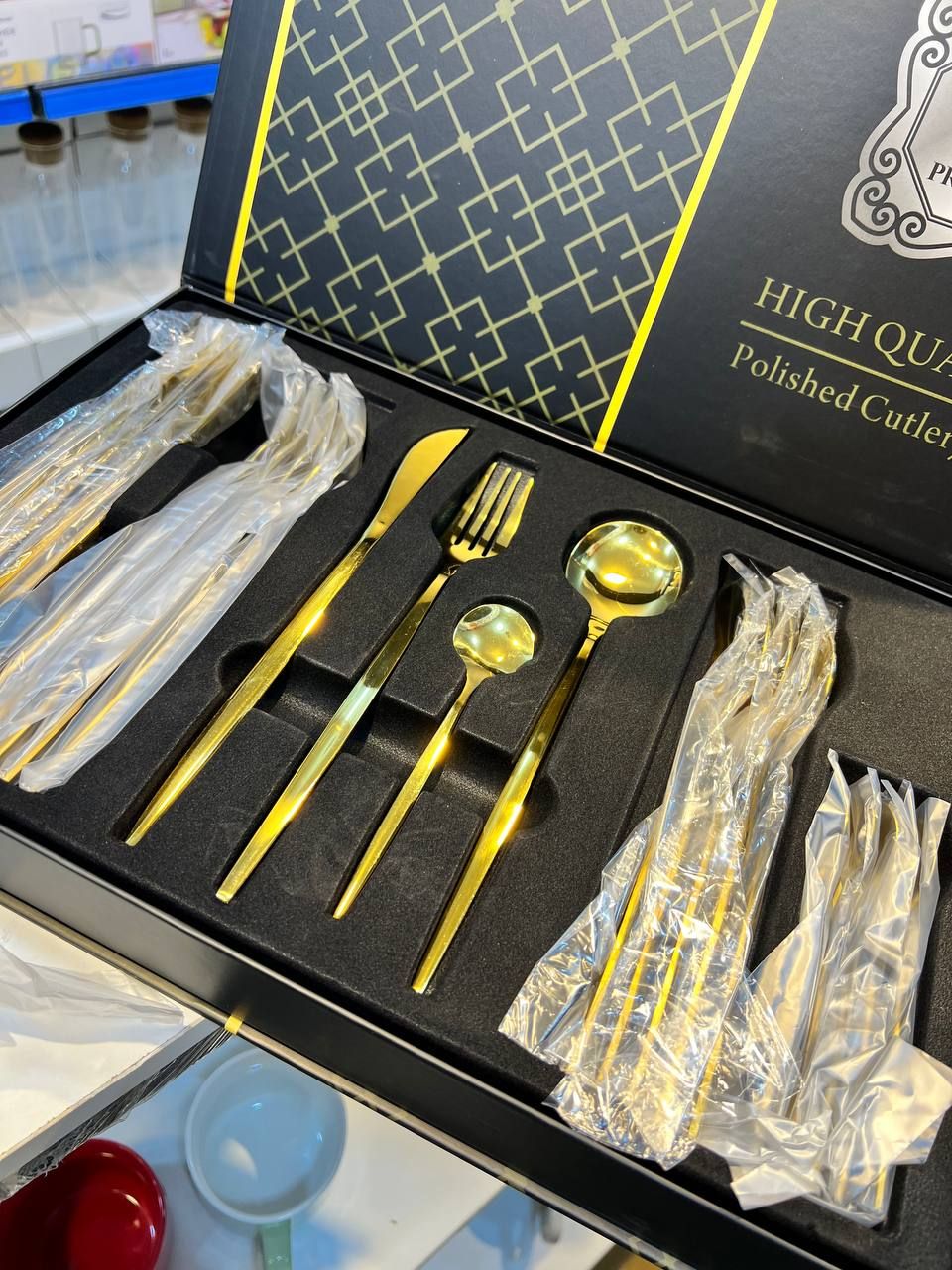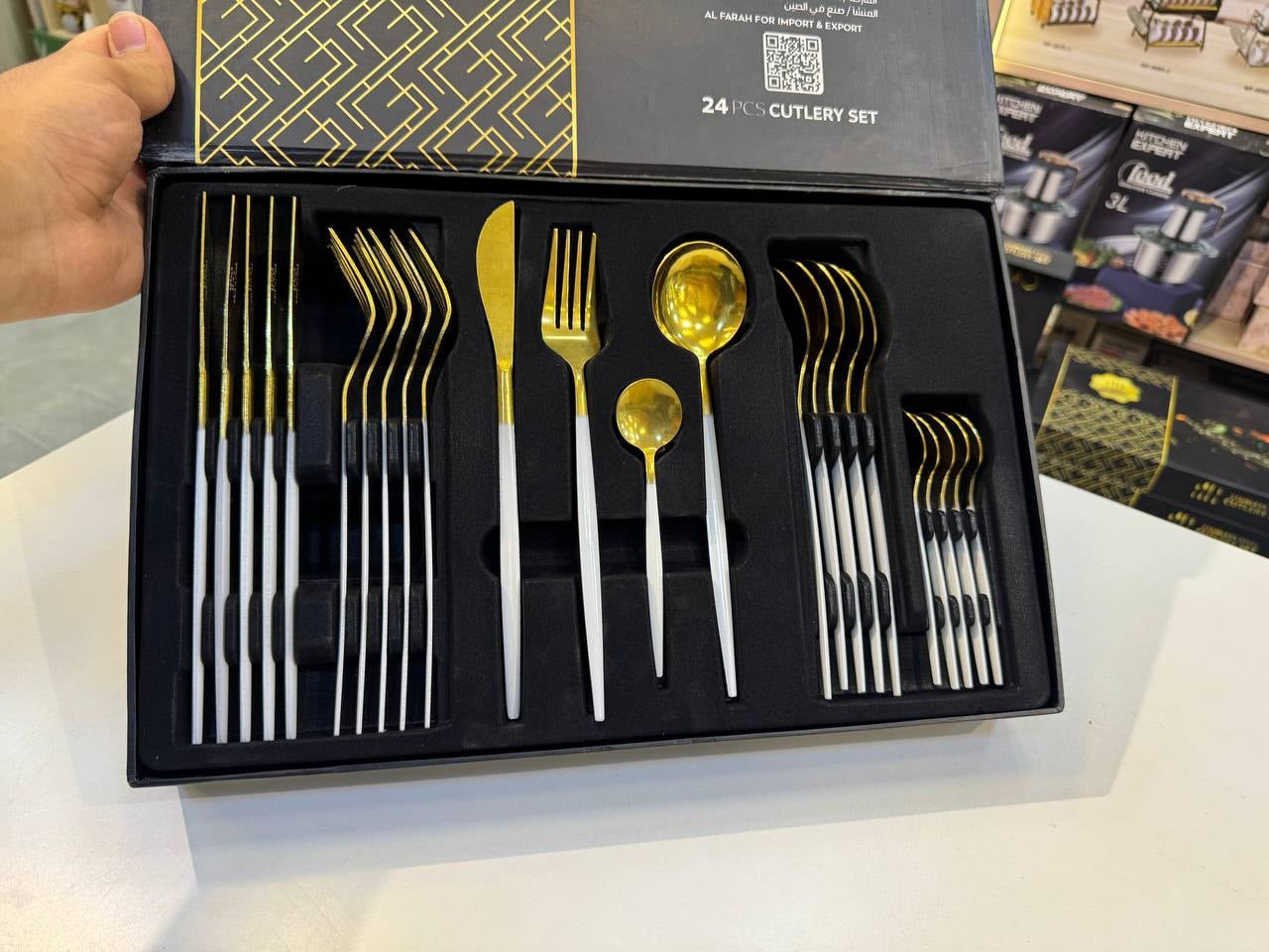طقم معالق استانلس ستيل 24 قطعة PRODUCT – خامة 304 عالية الجودة بلون ذهبي فاخر