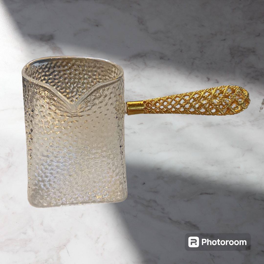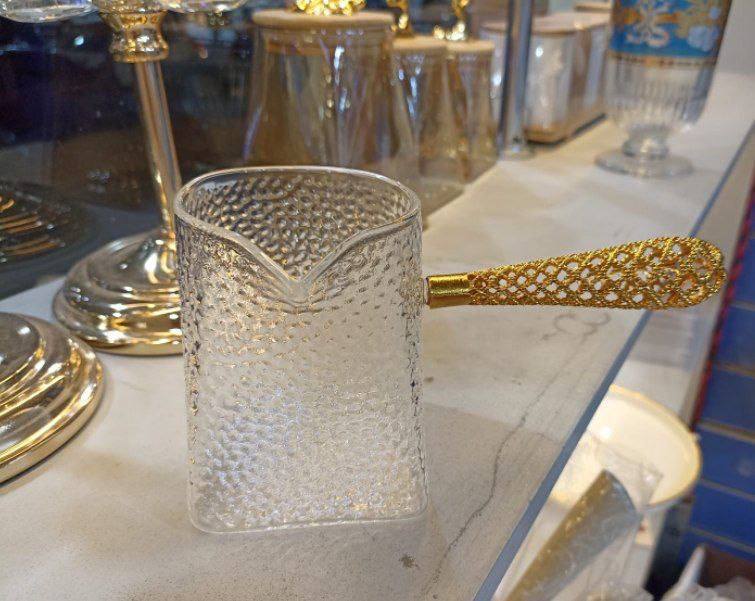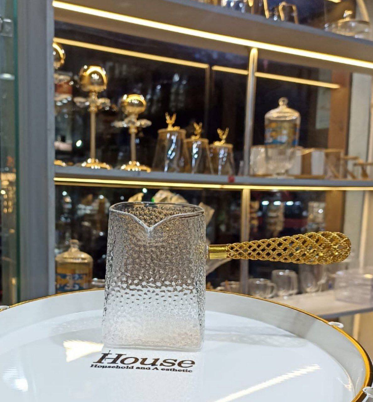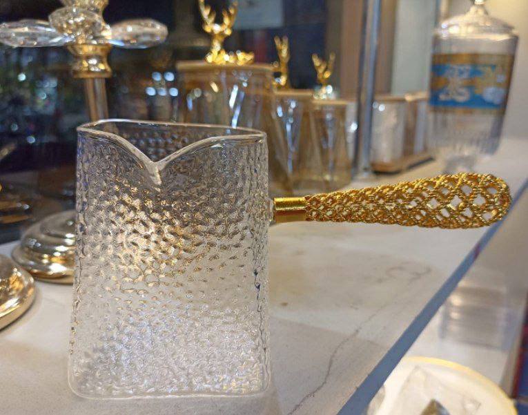 مصنوعة من زجاج بيركس مقاوم للحرارة ومناسبة للاستخدام المباشر على النار، مع مقبض معدني ذهبي عيار 24 يضيف لمسة فخامة لكل مطبخ.