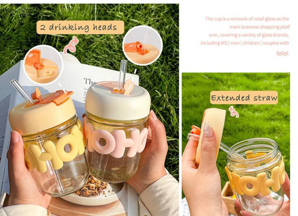 كوب HO الزجاجي المصنوع من خامة البايركس عالية الجودة مع كفر سيليكون أنيق للحماية ومقاومة الكسر.