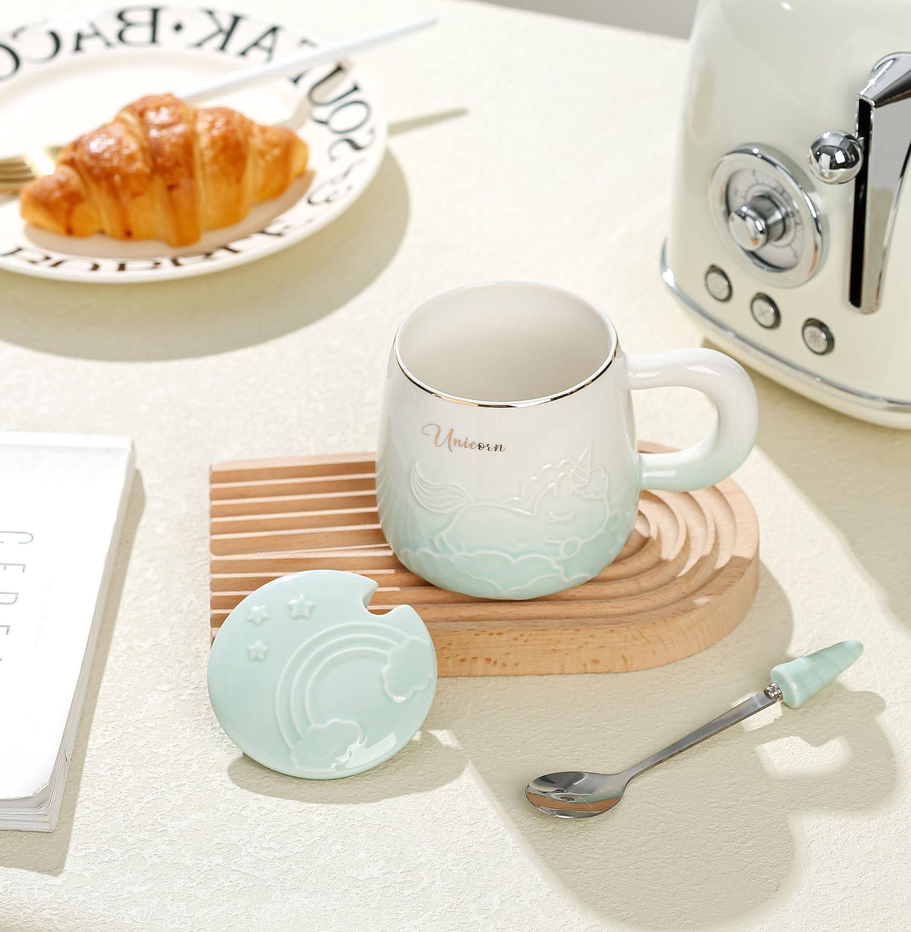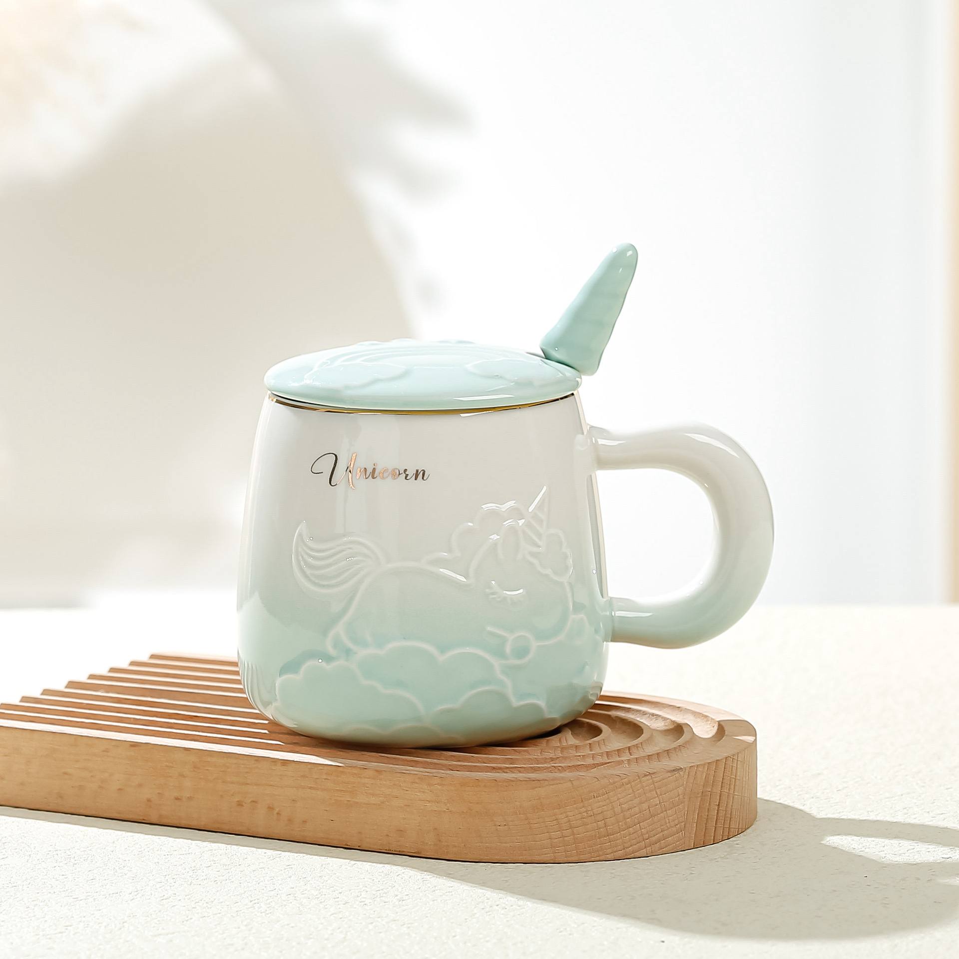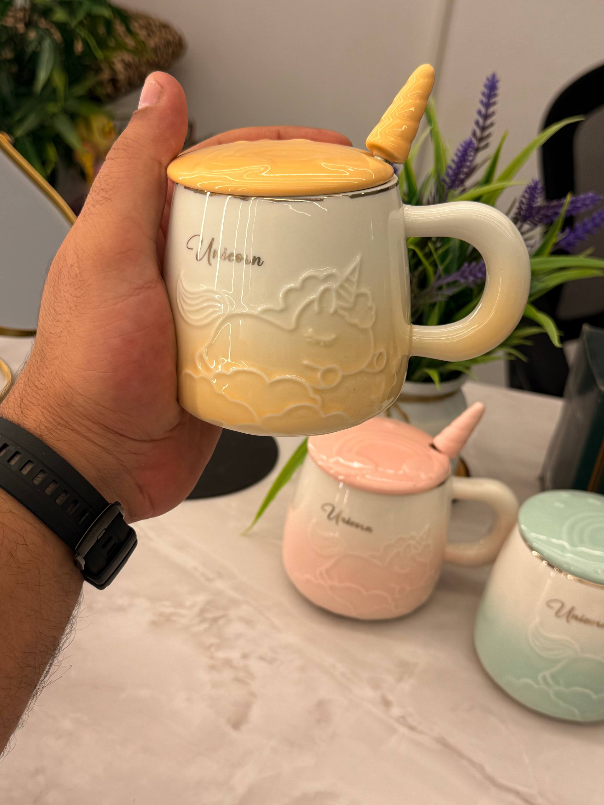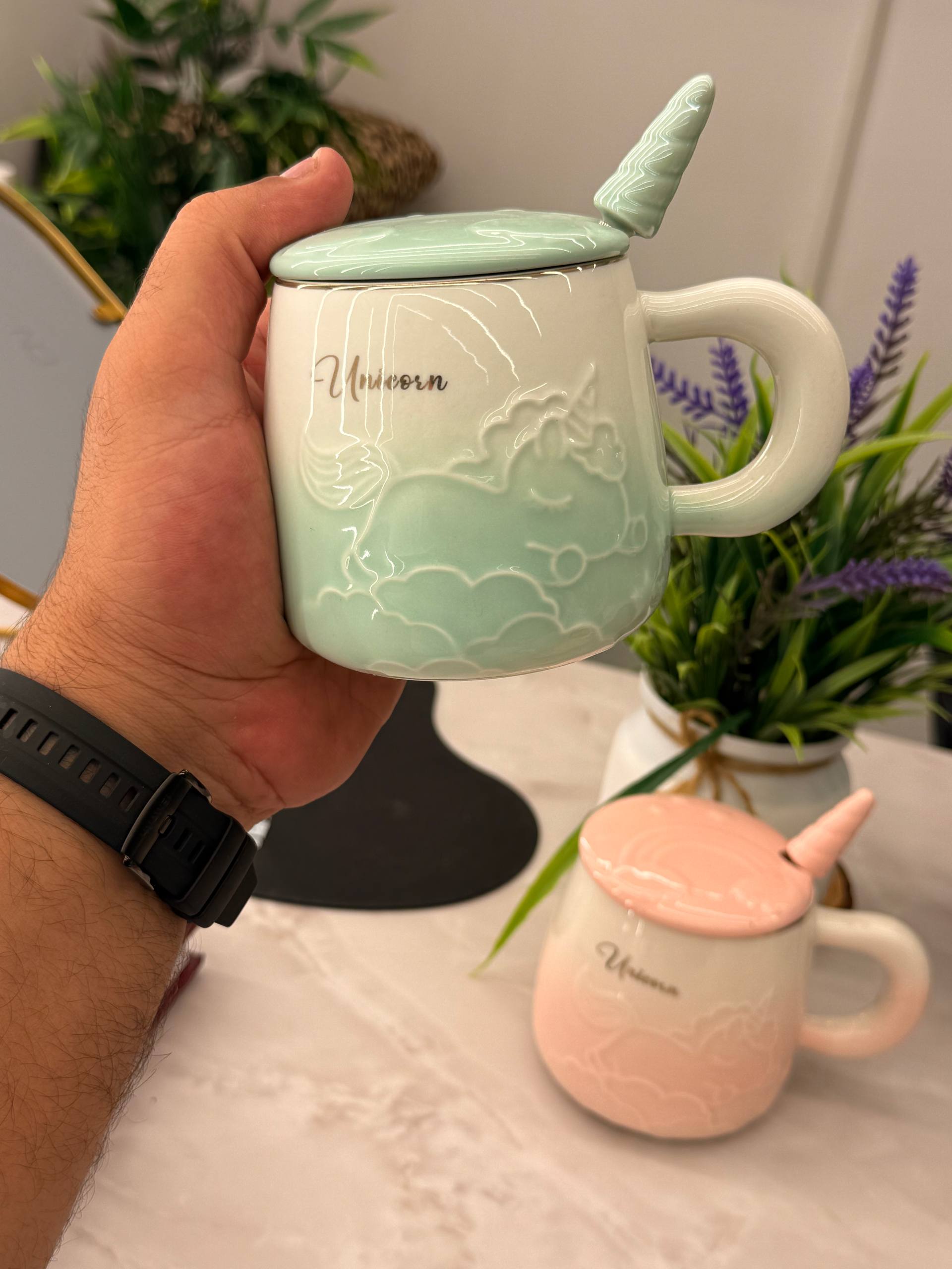 مج بورسلين أنيق بتصميم يونيكورن مميز يجمع بين الجمال والعملية.