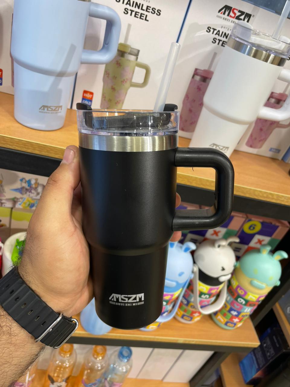 المج مصنوع من خامة استانلس ستيل عالية الجودة مقاومة للصدأ والخدوش، بغطاء محكم يمنع التسرب ومقبض مريح يسهل الحمل في أي مكان — سواء في العمل أو السيارة أو الرحلات.