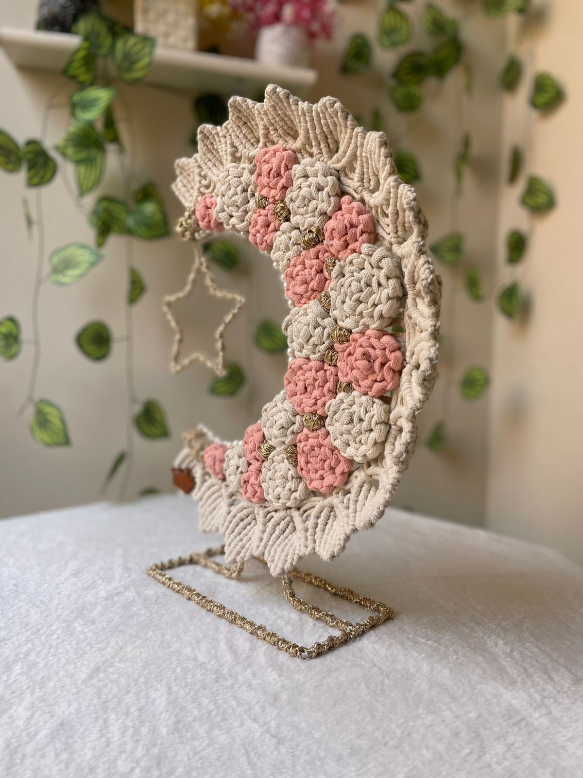 هلال رمضان هاند ميد بتصميم أنيق وتفاصيل راقية، قطعة ديكور فاخرة تضيف لمسة روحانية وجمال مميز لمنزلك في الشهر الكريم. متاح المعاينة والدفع عند الاستلام.