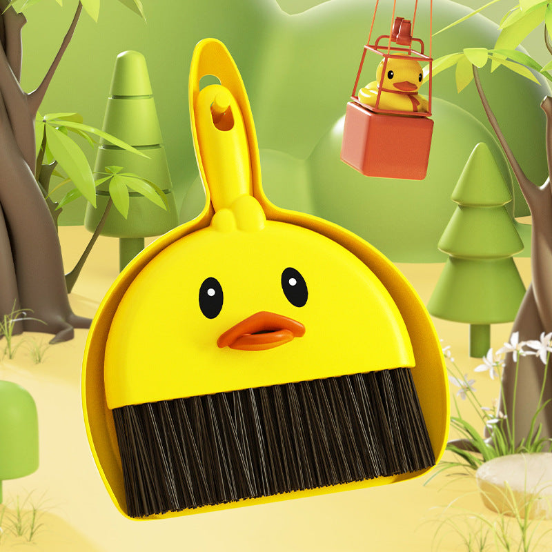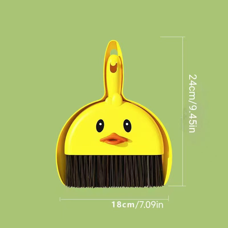 طقم مكنسة ومجرود مصغّر بتصميم بطة كرتونية لطيفة، مناسب لتنظيف الأسطح الصغيرة بسرعة وسهولة. يستخدم على المكاتب، طاولات المكياج، المطبخ، السيارة أو أي مساحة تحتاج تنظيف فوري بدون مجهود. خفيف، عملي وسهل التخزين.