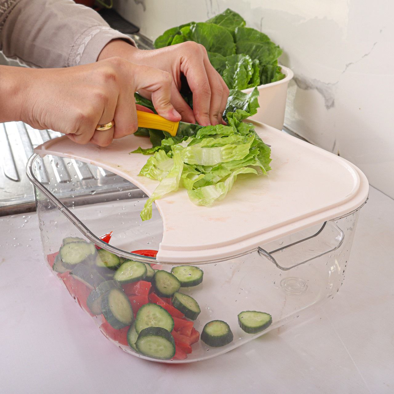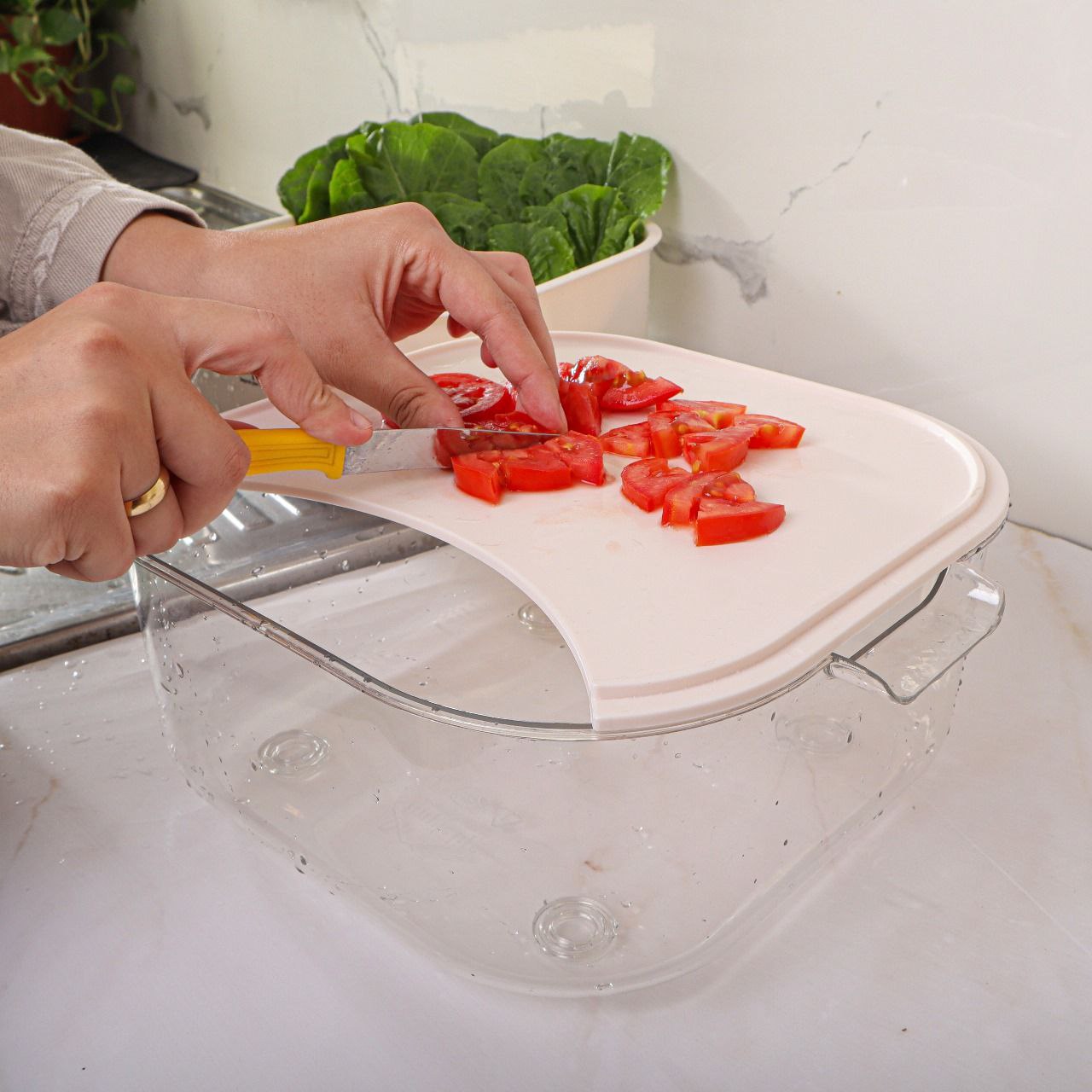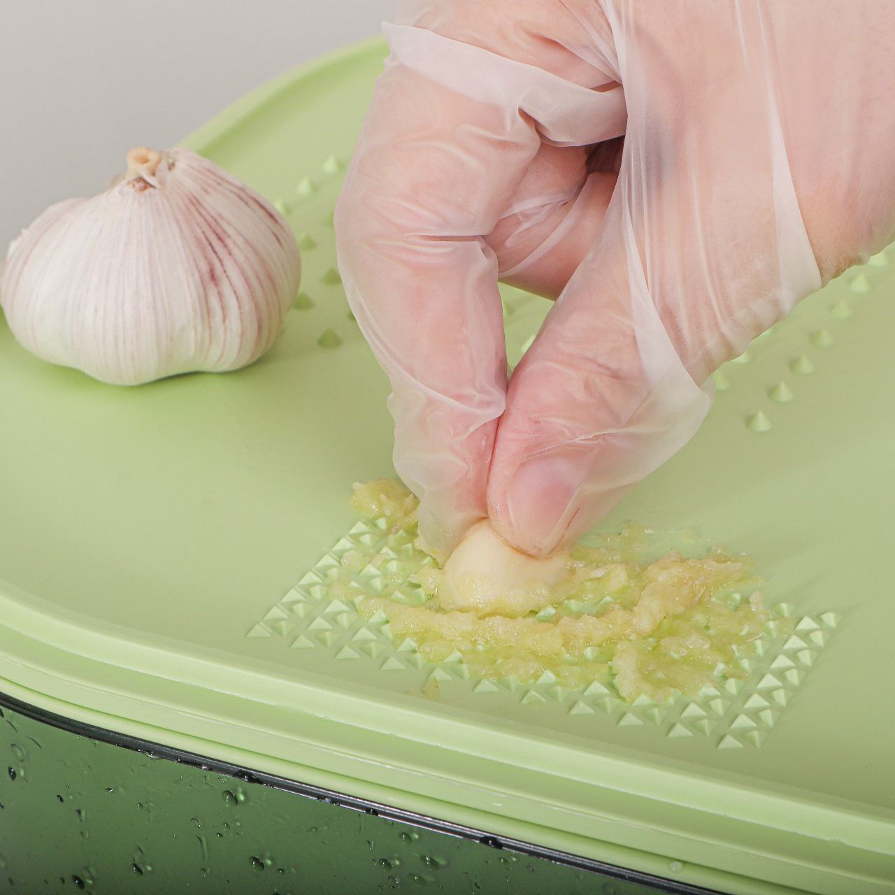 لوح تقطيع مزوّد بمبشرة مدمجة للطماطم والثوم لتوفير الوقت.